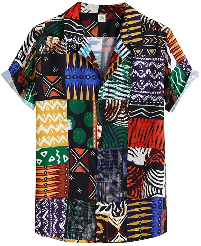 Men's Casual Short Sleeve Shirt with Square Pattern